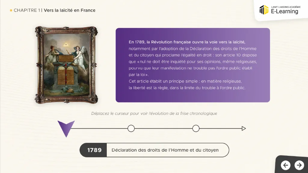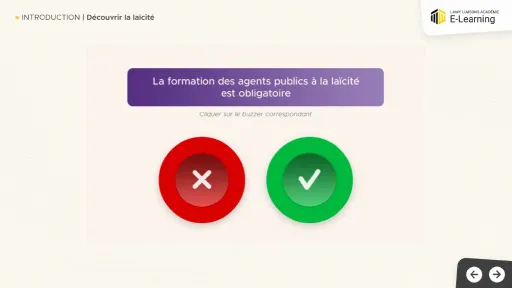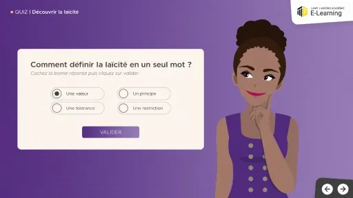 Le principe de laïcité repose sur quatre piliers : liberté de conscience, égalité en droit, séparation entre État et cultes, et neutralité des institutions publiques. En première ligne pour faire vivre ce principe sur le terrain, les agents publics sont notamment tenus de respecter une stricte obligation de neutralité. Or, l’application de la laïcité au quotidien peut donner lieu à des doutes et hésitations : c’est pourquoi la loi CRPR du 24 août 2021 a rendu obligatoire la formation de tous les agents publics à ce principe. Ce module e-learning permet ainsi aux agents de maîtriser les fondamentaux du cadre juridique en matière de laïcité, mais également de monter en compétence dans la gestion des situations au quotidien grâce aux nombreux exercices proposés à partir d’exemples concrets et personnalisés.