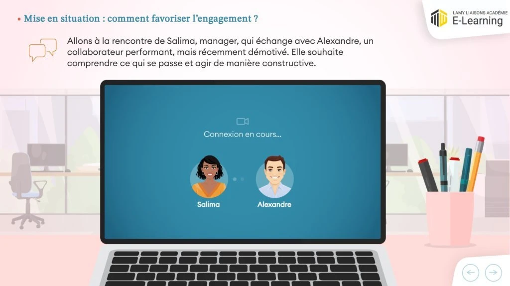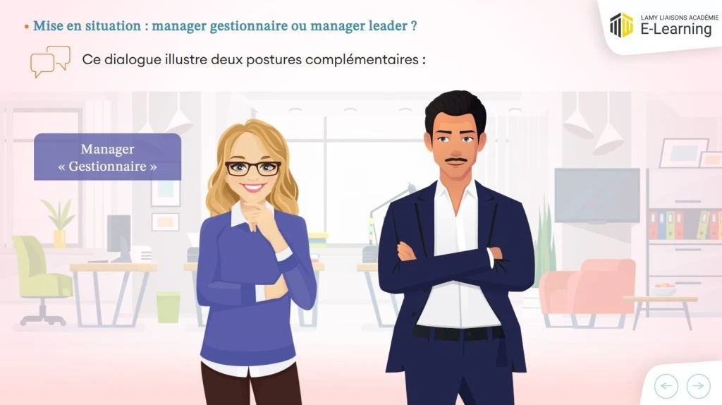 Ce module e-learning propose une approche concrète et inspirante du leadership : il s’appuie sur des mises en situation réalistes et sur un environnement graphique immersif. Il fait partie de la collection « Stratégies de leadership » qui comprend 5 modules.