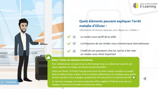 Notre pédagogie PAAD© utilisant des ancrages visuels et sonores. > PRENDRE CONSCIENCE : Sensibiliser par des quiz, des mises en situation animées pour une prise de conscience de l’importance du sujet pour lui et l’entreprise. > APPRENDRE : Assurer un apprentissage dynamique par des activités interactives, des vidéos pédagogiques et des quiz formatifs. > AGIR : Mettre en perspective l’apprenant dans son quotidien professionnel pour changer ses pratiques grâce à des mises en situations opérationnelles et des cas adaptés. > DURABLEMENT : Consolider les connaissances clés dans la durée via une synthèse, une évaluation des acquis et des fiches mémos téléchargeables.